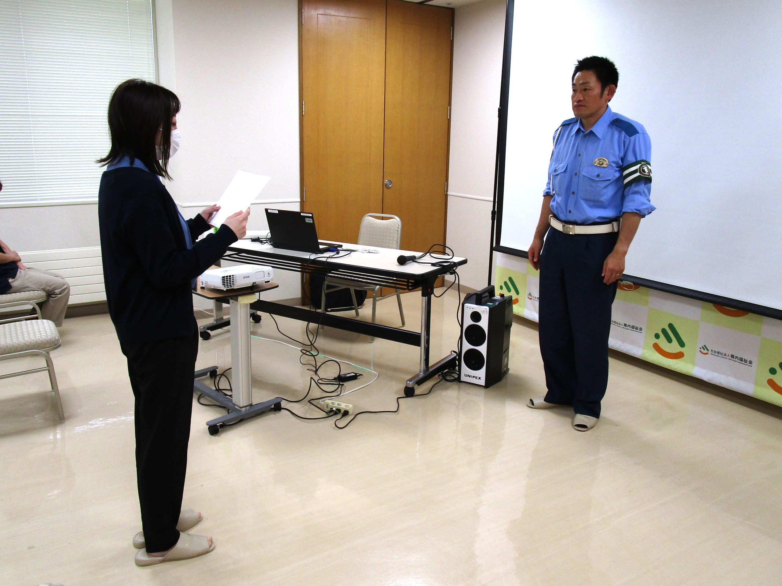 最後に職員を代表して、居宅介護支援センター潮見園の武田主任から交通安全宣言が行われました。